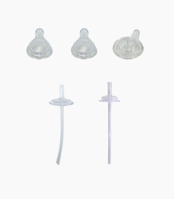 This bundle includes: 1 Medium Teat, 1 Fast Teat, 1 Spout, 1 Open Straw and 1 Original straw