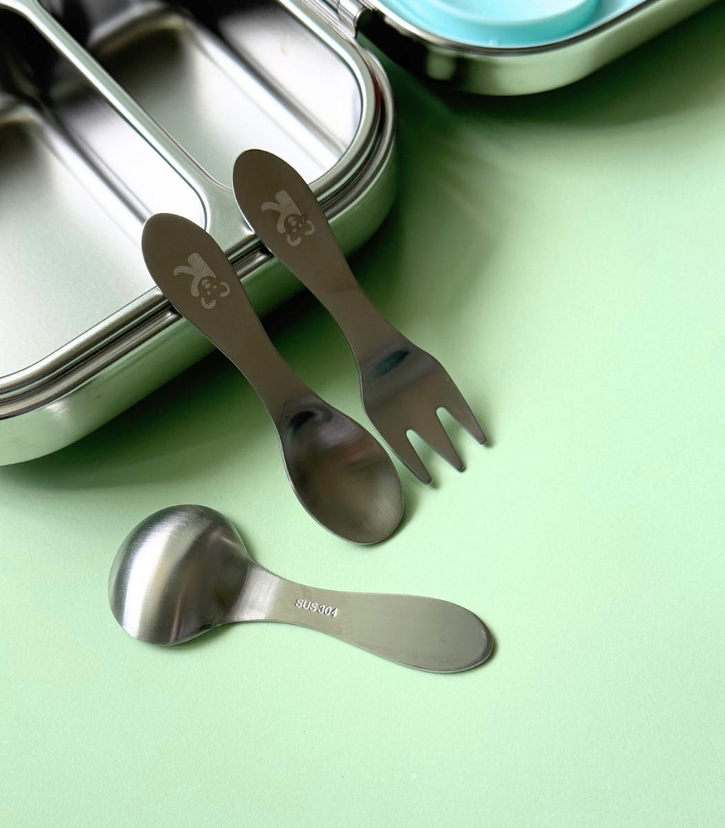 Lunch box sized fully stainless steel cutlery set with 1 regular spoon, 1 soup spoon and 1 fork. Fits perfectly in our Kaally bento range as well as Kaally Snackbox